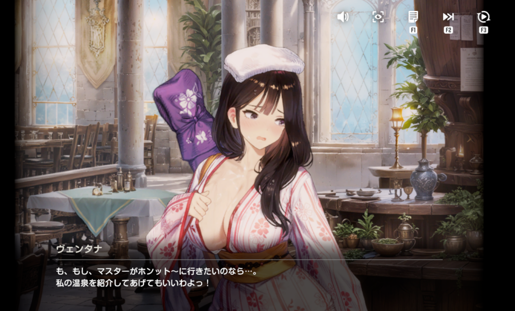 それでは「温泉修行人 ヴェンタナ」のインタラクションについて紹介していく。
