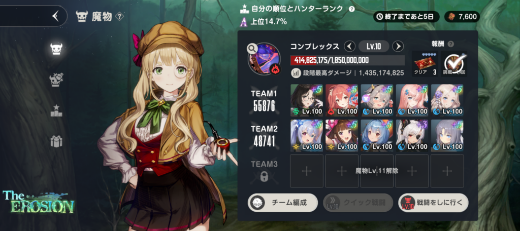 半端に育成したキャラクターや凸が進んでいないキャラクターより、ロエンの方が高いダメージを出してくれる事も少なくなかった。それでも大体レベル5~8くらいは安定してクリアできていた。