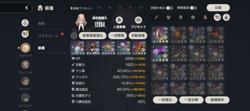 画像のキャラクターは89%の魔法抵抗を持たせてるが、もう少し低めでも大丈夫かも。