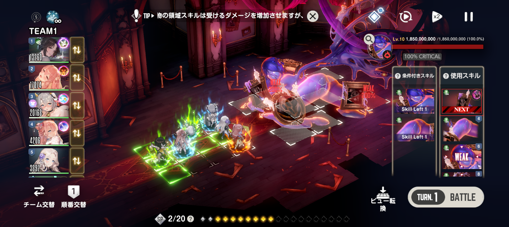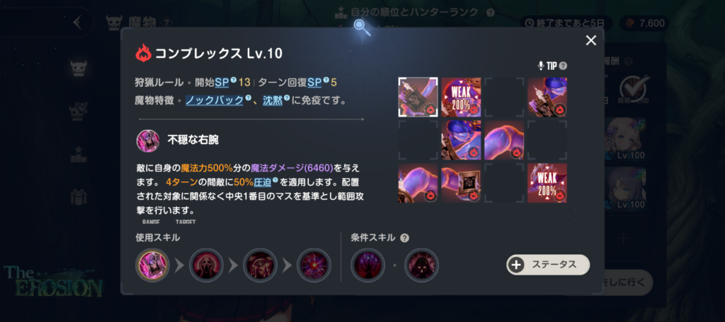 中央の列の配置が有難く、比較的どのアタッカーも攻撃が通しやすいボスだと思う。