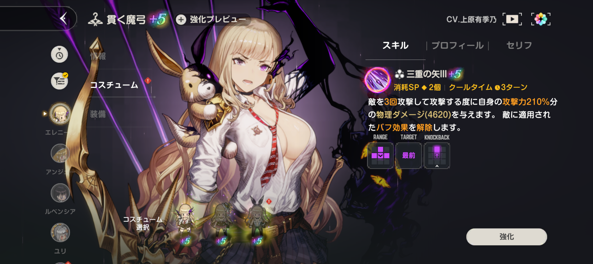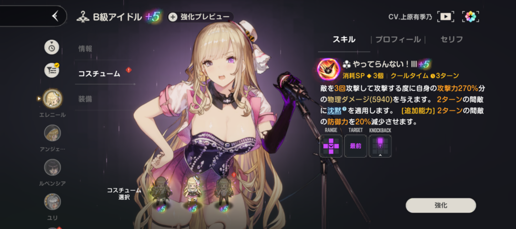エレニールの主力コスチュームは先ほどの「貫く魔弓」と「B級アイドル」コスチューム。